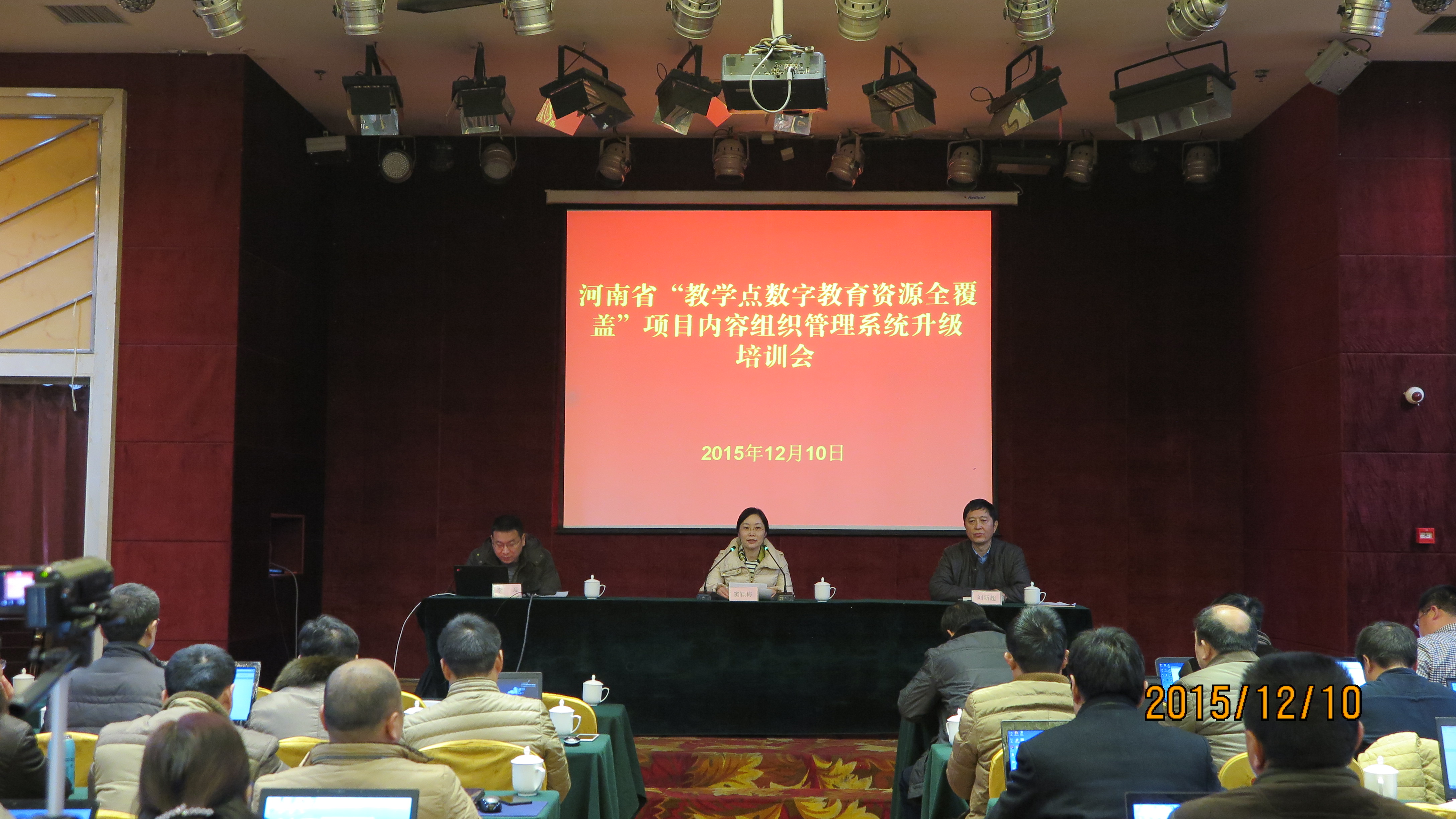 12月10号上午,河南省“教学点数字教育资源全覆盖”项目软件升级培训会议在郑州召开。省电教馆副馆长窦颖梅出席会议并讲话,信息化推进办公室主任刘新超主持会议,各省辖市、省直管县教学点数字教育资源全覆盖项目的系统操作技术人员,项目县(市)系统操作技术人员120余人参加培训。