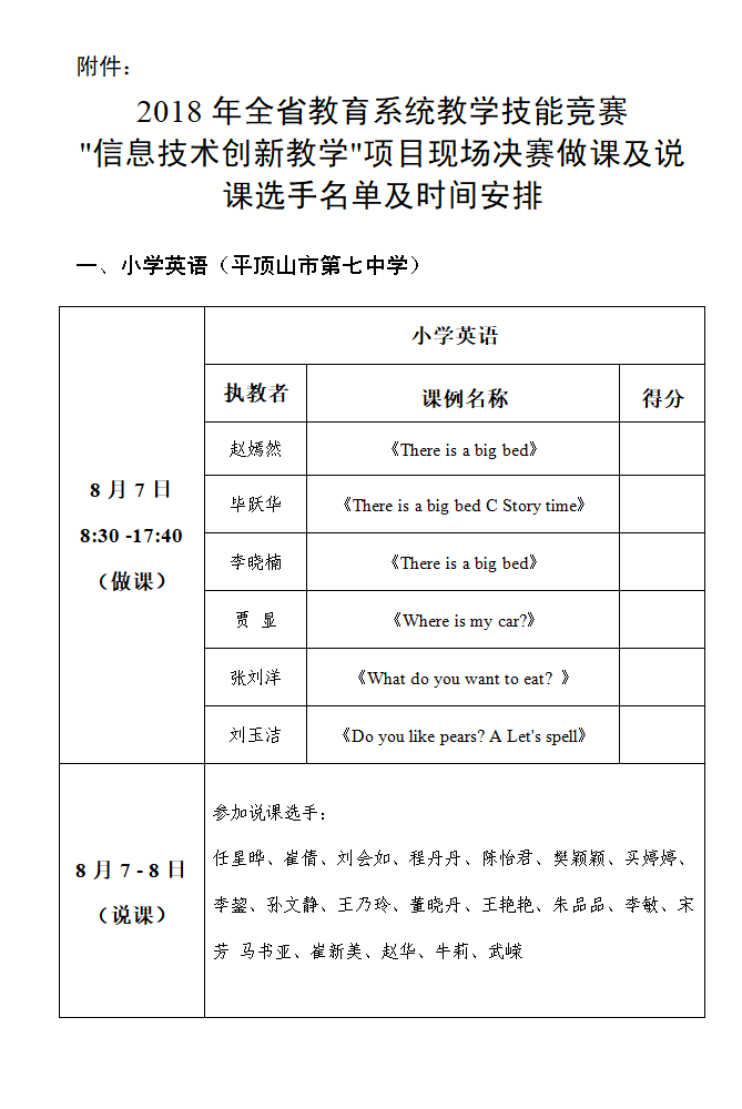 经过资格审查和专家评审,参加2018年全省教育系统教学技能竞赛“信息技术创新教学”项目现场决赛活动的人员为: