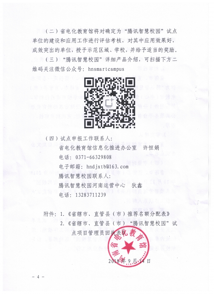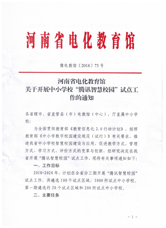 河南省电化教育馆关于开展中小学校“腾讯智慧校园”试点工作的通知