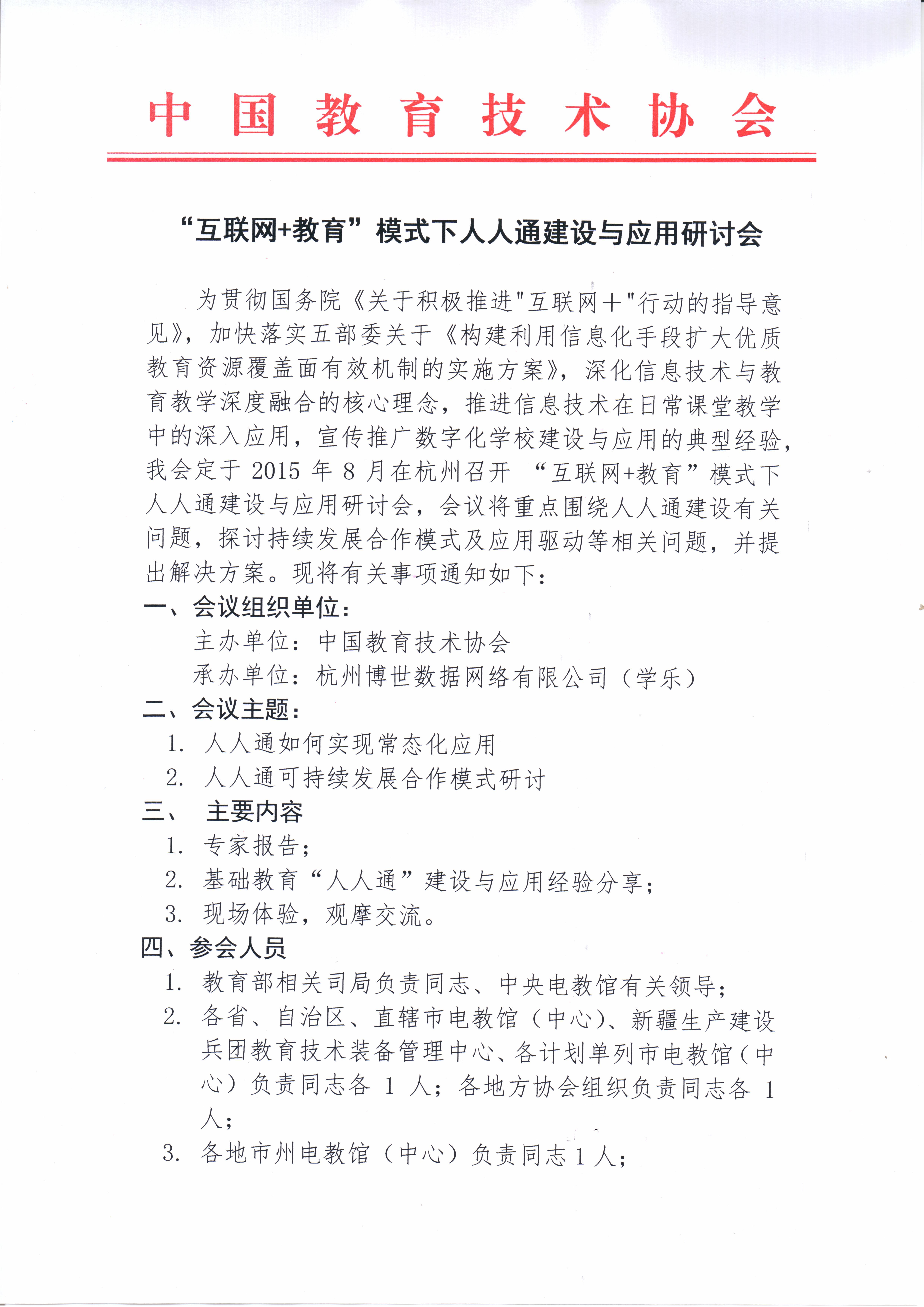 中国教育技术协会“互联网+教育”模式下人人通建设与应用研讨会