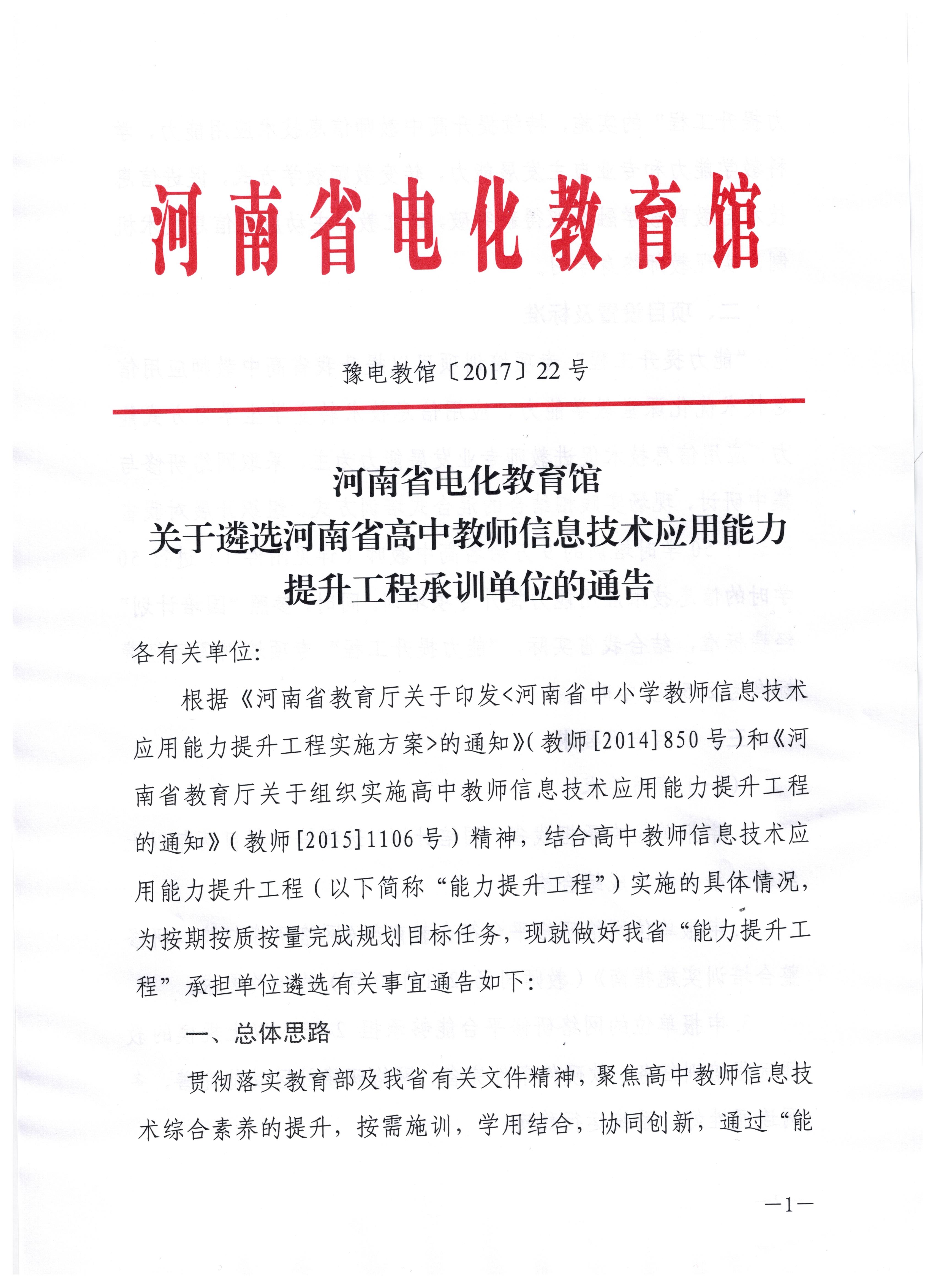 河南省电化教育馆关于遴选河南省高中教师信息技术应用能力提升工程承训单位的通告