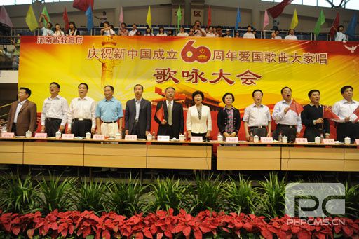 9月27日下午,省教育厅“庆祝新中国成立60周年爱国歌曲大家唱”歌咏大会在郑州大学南校区体育馆隆重举行。省教育厅机关和厅直属单位的干部教师用美好的歌声迎接新中国60华诞,祝福我们伟大的祖国繁荣富强。