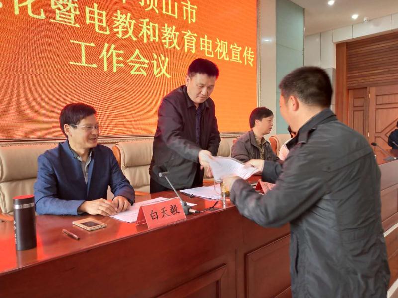 会议宣读了《全市基础教育信息化建设进展情况的通报》,各县(市)、区教体局向翟瑞安递交了《2018年度网络安全承诺书》,会议对2017年度全市电教工作先进单位和先进个人进行了表彰。