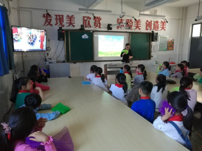 在湖光小学的显示屏上,老师一边面向教室里的学生提问题,一边面向屏幕,向远在数里外的西滍小学的学生们解释一些概念定理。教师熟练的利用现代化教学技术,实现了 “空中”授课,也让数里外的学生们享受了两堂别开生面的音乐课和美术课。赢得了学生们的好评。通过“空中课堂”,湖光小学和西滍小学之间实现了优质师资的共享。