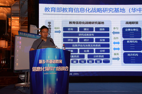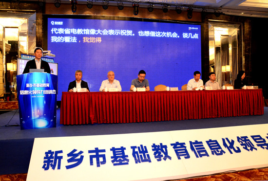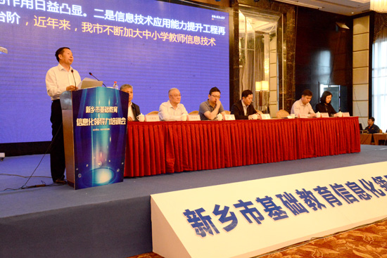 刘新超在会上致辞,他说,新乡隆重召开的这次教育信息化领导力培训会,标志着新乡吹响了1.0迈向2.0时代的进军号角,是对教育信息化工作的部署会、动员会。他指出,在教育信息化2.0时代,一是要抓重点。要全面提升教育信息化环境和数字化公共资源服务平台平台建设,实现有线无线网络全覆盖,为教育信息化打下良好的基础。二是要抓应用。教育信息化建设的目标是应用,要转变观念,树立购买云服务的新理念,做好信息技术与课程的深度融合,提高应用效率,提高应用质量,使教育信息化工作再上新台阶。