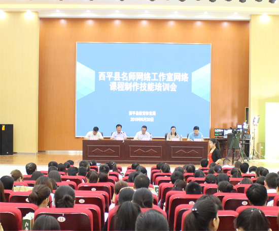 本次培训会首先共同学习了河南省教育厅《关于开展网络课程建设推动优质资源共建共享有关问题的通知》(豫教电2017[92]号)。其次,电教中心主任栗世宇对西平县名师网络工作室建设及应用情况作了介绍。“西平县名师网络工作室”于2016年成立,是驻马店市独一无二的网络工作室。名师网络工作室是河南省现代教育研究院试点项目,它主要利用虚拟场景抠像技术将授课教师置入所需场景,生动形象地传授所教知识重点,让学生喜闻乐见,同时它适应制作微课、翻转课堂,有利于知识点的教学和资源的扩充。几年来,西平县名师网络工作室,充分发挥了名师的示范、辐射和指导作用,实现了资源共享、智慧生成、全员提升的目的,培养了一批师德高尚、造诣深厚、业务精湛的教师,多次受到省、市级表彰。