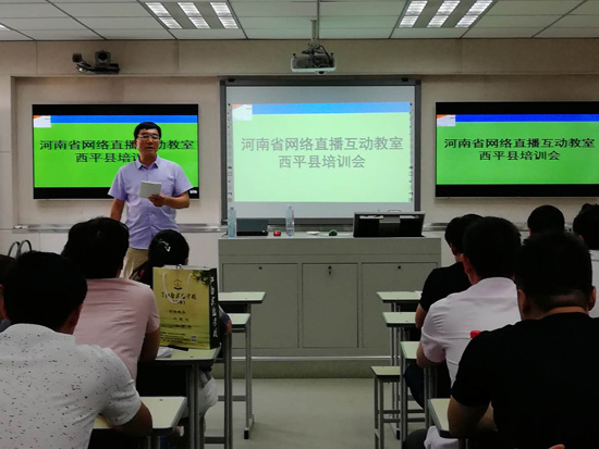 下午,河南省网络直播互动教室西平县培训会在西平县第二小学网络直播互动教室召开。全县各学校电教管理员50多人参加培训,市电教馆副馆长汪健也参加了培训。培训由江苏三步科技集团经理王小虎主讲,重点讲授了录播教室设备的功能、课程录制过程中遇到的疑难问题,并对学员提出的问题进行了详细的解答。