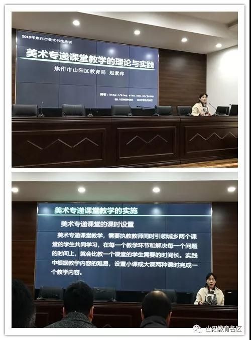 焦作市山阳区教育局日前召开《美术专递课堂教学的理论与实践》培训会,该区全体美术书法专兼职教师参加了会议。