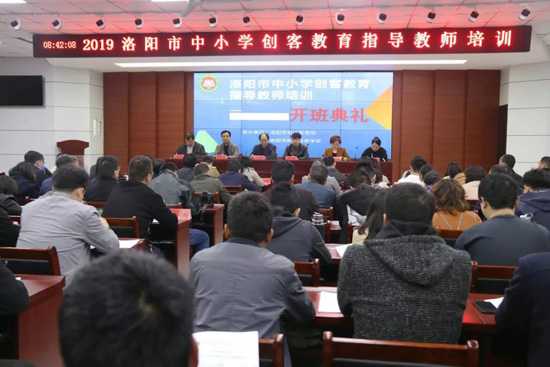 3月29日上午洛阳市中小学创客教育指导教师培训班在洛阳市教师进修学校春风厅举办。本次培训由洛阳市教育局主办,洛阳市电化教育馆、洛阳市教师进修学校承办,共有来自洛阳市中小学的87名教师参加。开班典礼由洛阳市电教馆的张雷涛老师主持。