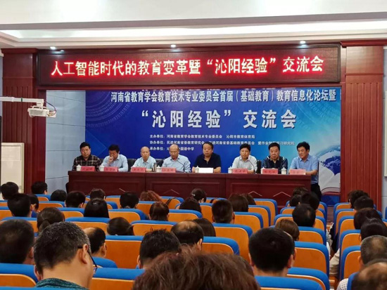 河南省教育学会教育技术专业委员会首届(基础教育)教育信息化论坛暨“沁阳经验”交流会于5月17日在沁阳市顺利召开。河南省教育信息化发展研究中心主任、河南省教育学会教育技术专业委员会理事长汪基德、沁阳市人民政府副市长刘明法、河南省教育学会教育技术专业委员会副理事长蔡建东和沁阳市教育体育局相关领导,以及来自全省各地市10余所学校的校长和骨干教师出席活动。