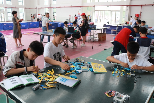 教育机器人分为创意拼装赛和巡线挑战赛,其中创意拼装赛的主题为“智能机器人”,巡线挑战赛的主题为“人工智能”。赛场上,同学们先是分工协作,进行创意拼装;后又进行认真编程,测试修改,最终完成任务。