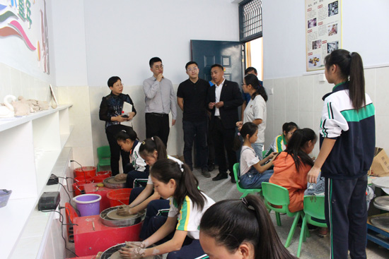 陶艺教室里,一件件学生亲手烧制的精美陶器和瓷器让检查组的同志赞叹不已。