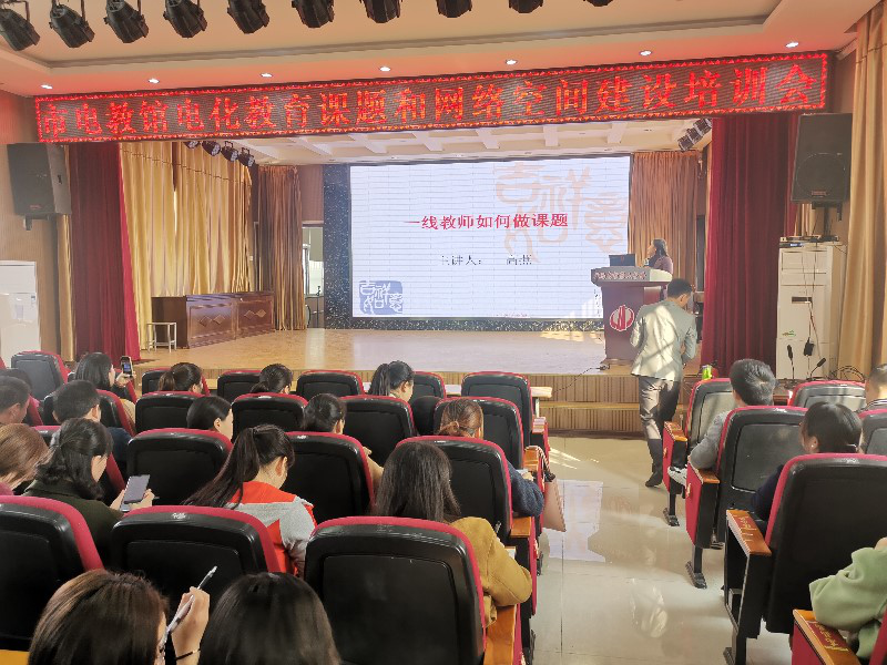 2019年11月9日,驻马店市举办电化教育专项课题主持人网络空间建设培训。会上,驻马店市教育局云平台管理办公室的高燕做了《一线教师如何开展课题研究》专题讲座。并分享了多年课题制作相关的选题、开题、中期、结题等材料的收集与撰写方法。驻马店教育云服务平台运维工作人员讲解了《驻马店教育云网络学习空间的常态化应用方法》。报告中,刘老师列举了云平台上优秀教师空间、班级空间、学生空间、名师工作室等案例。200多名教师参与本次培训会。