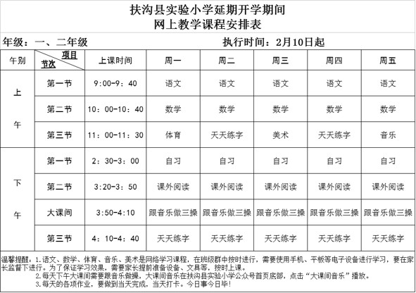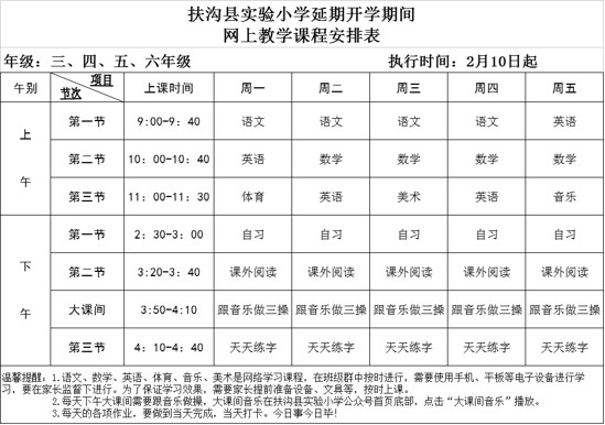 附件2:扶沟县实验小学延期开学期间网上教学课程安排表