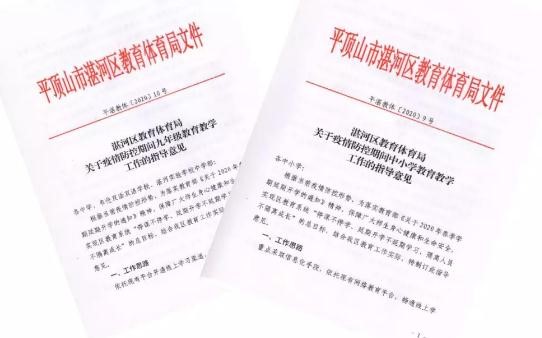 1月31日,区教体局向全区中小学校印发《湛河区教育体育局关于疫情防控期间中小学教育教学工作的指导意见》和《湛河区教育体育局关于疫情防控期间九年级教育教学工作的指导意见》。