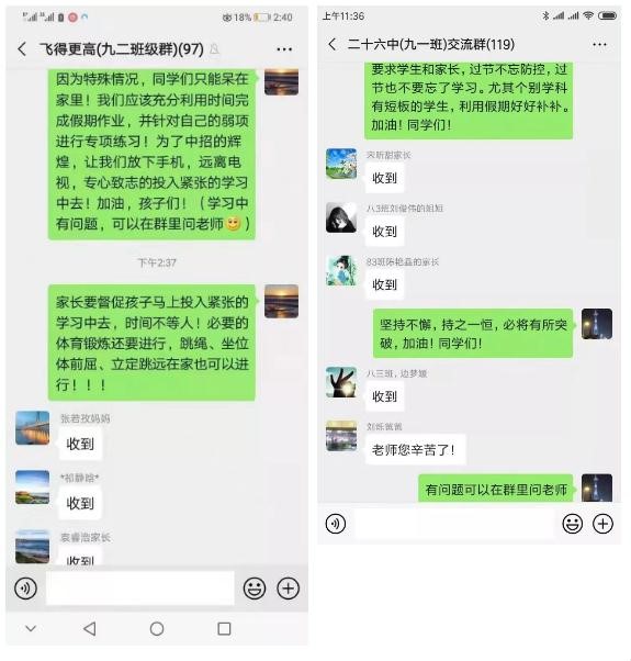我们每个班级、每个学科的老师都会邀请家长们进入学习指导微信群,给孩子们安排学习内容、学习进度、作息时间,指导孩子们线上学习,给孩子们答疑解惑。也请家长们配合老师做好信息沟通,及时反馈孩子学习完成情况。