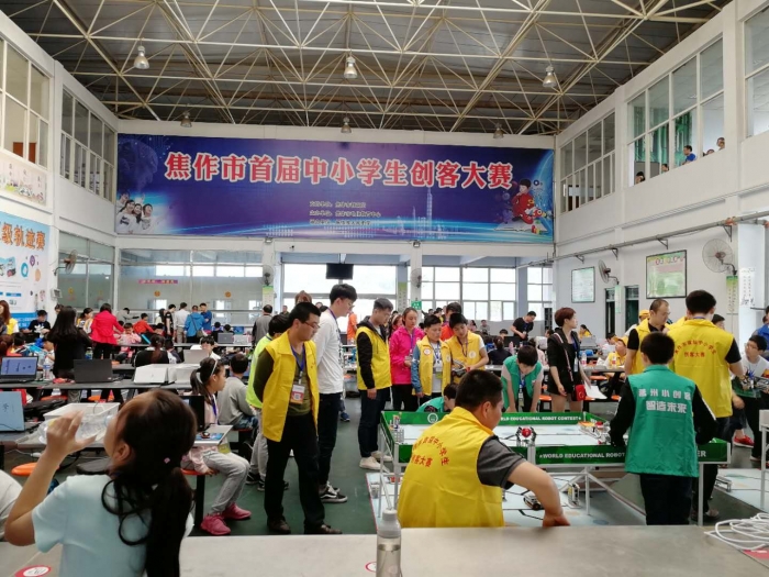 日前,焦作市电化教育中心举办全市首届中小学创客大赛,进一步推进全市中小学创客教育发展,提升学生创新合作能力。来自全市十一个县(市)区四百五十九个代表队约六百多名创客选手参加了智能车竞赛、WER、智能资源采集、物流机器人等九项赛事活动。在为期一天的竞赛中,小选手们紧张有序,兴奋热烈,合作探究,寓学于赛。