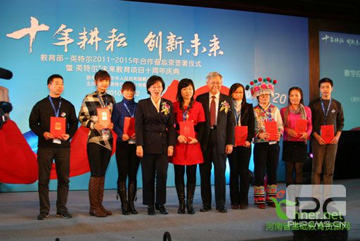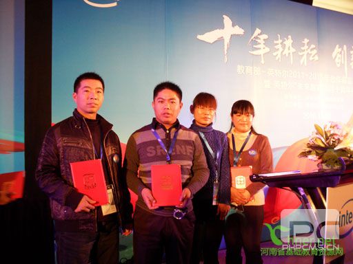据悉,"十年耕耘,创新未来"教育部-英特尔2011-2015合作备忘录签署仪式暨英特尔未来教育项目十周年庆典12月2日在北京长城饭店隆重举行,教育部部长助理吴德刚、英特尔中国区总裁杨叙等出席,来自参与英特尔?未来教育项目的32个省、市、自治区、生产建设兵团的二百余名教育界人士和优秀获奖教师代表参加了庆典。襄城县库庄一中库亚鸽、襄城县颍阳镇一中周旭涛、襄城县斌英中学王静、襄城县教育信息中心鲁鹏德作为获奖教师代表应邀参加并上台领奖,教育部基础教育司司长高洪、师范司司长管培俊同他们合影留念。他们的作品《创建我们的海底家园》、《模拟法庭》、《Unit9Howwasyourweekend》在此次活动中被评为"基础课程项目"一等奖,并收入中央广播电视大学出版社出版的《英特尔未来教育项目十周年教学应用优秀成果集锦》一书。这是继2009年范湖一中学生在中小学生电脑制作大赛中获得全国一等奖后,襄城县在教育信息化教研活动中再次获得全国一等奖,而且获奖数量多,充分显示了襄城县教育信息化教研工作的雄厚实力。