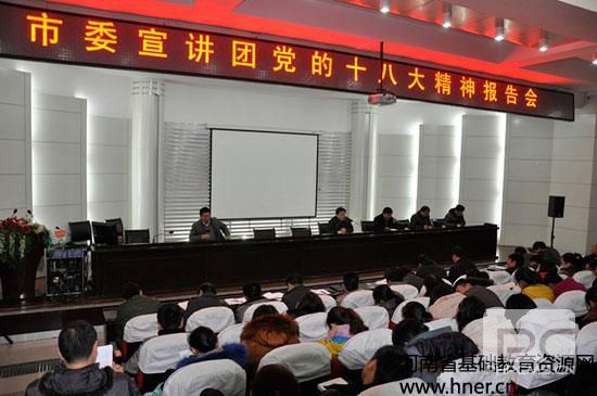 近日,济源市委“党的十八大”精神宣讲团走进济源一中,全校近600名教职工师生认真聆听了党的十八大精神宣讲。